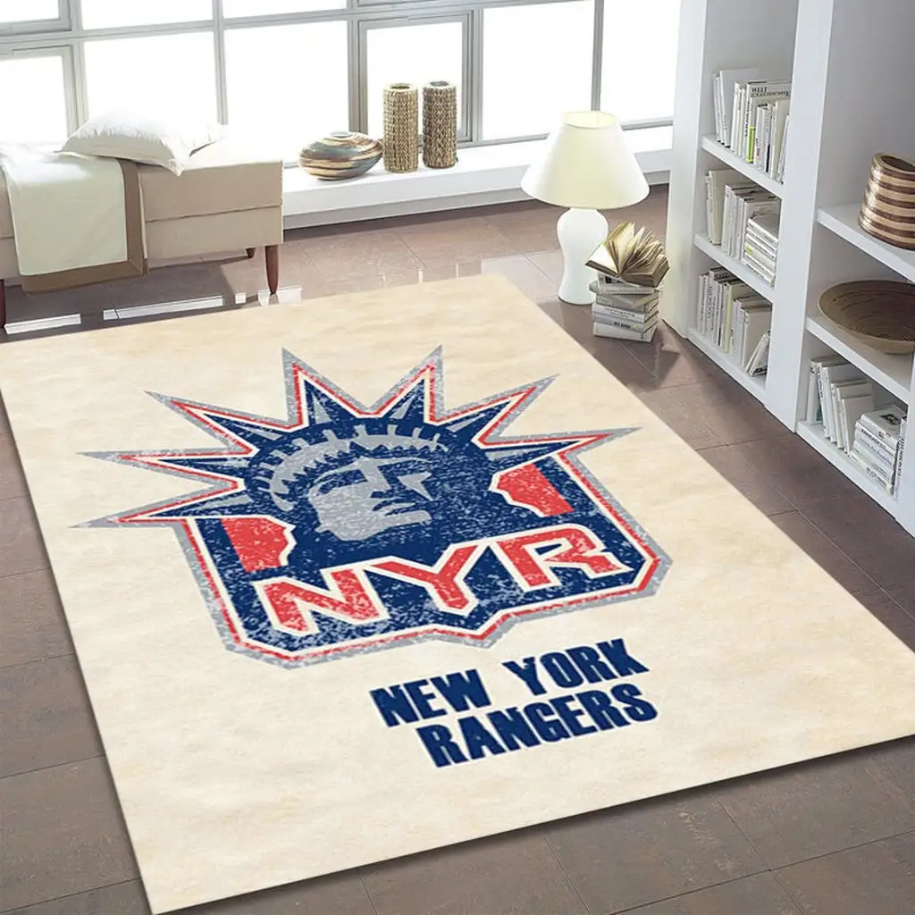 New York Rangers Rug – Area for Living Room Decor Beige and Blue