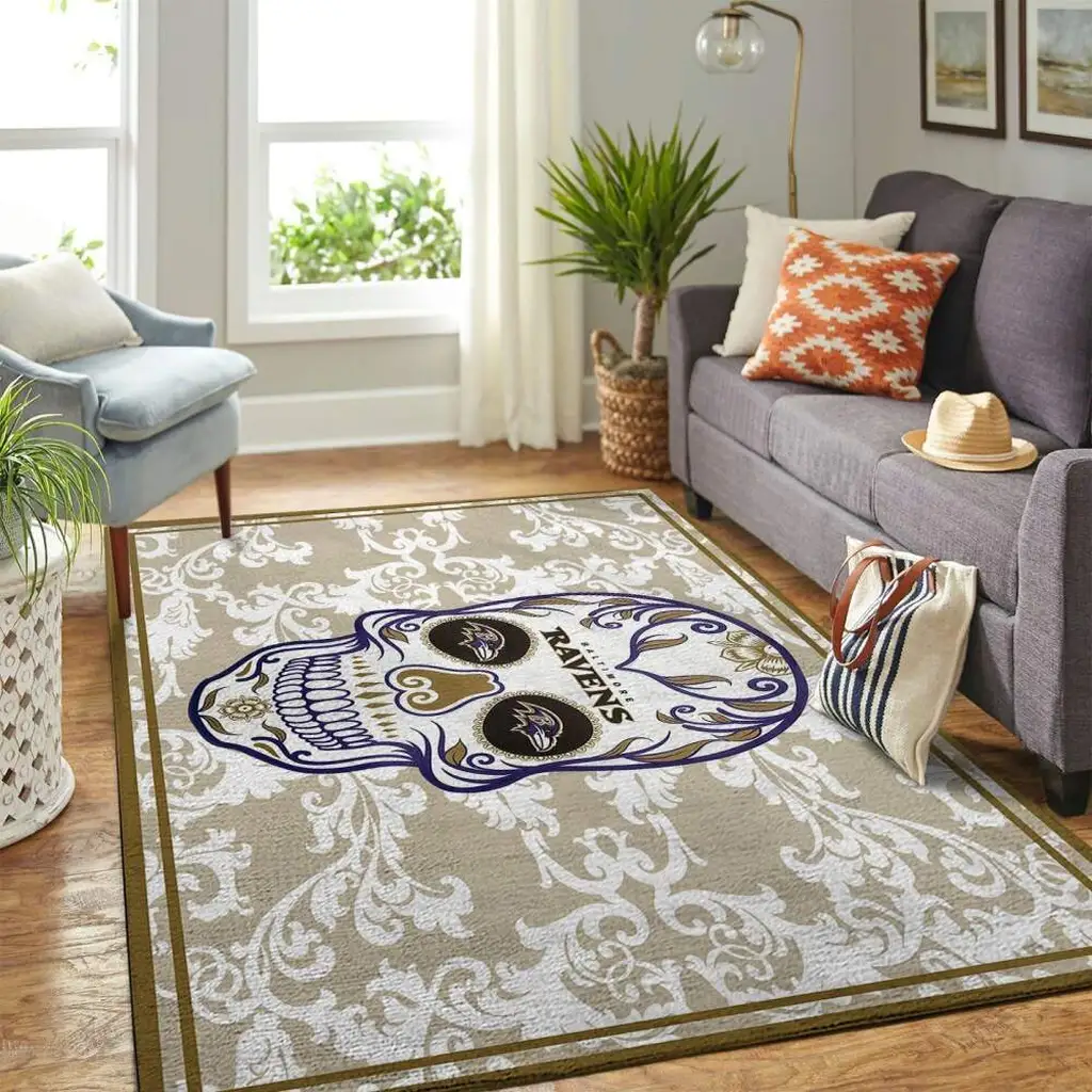 Baltimore Ravens Rug – Area with Skull Design for Fans Beige and White