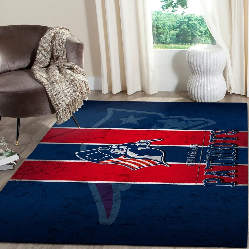 Patriots Rug for Living Room Game Room Decor Blue and Red