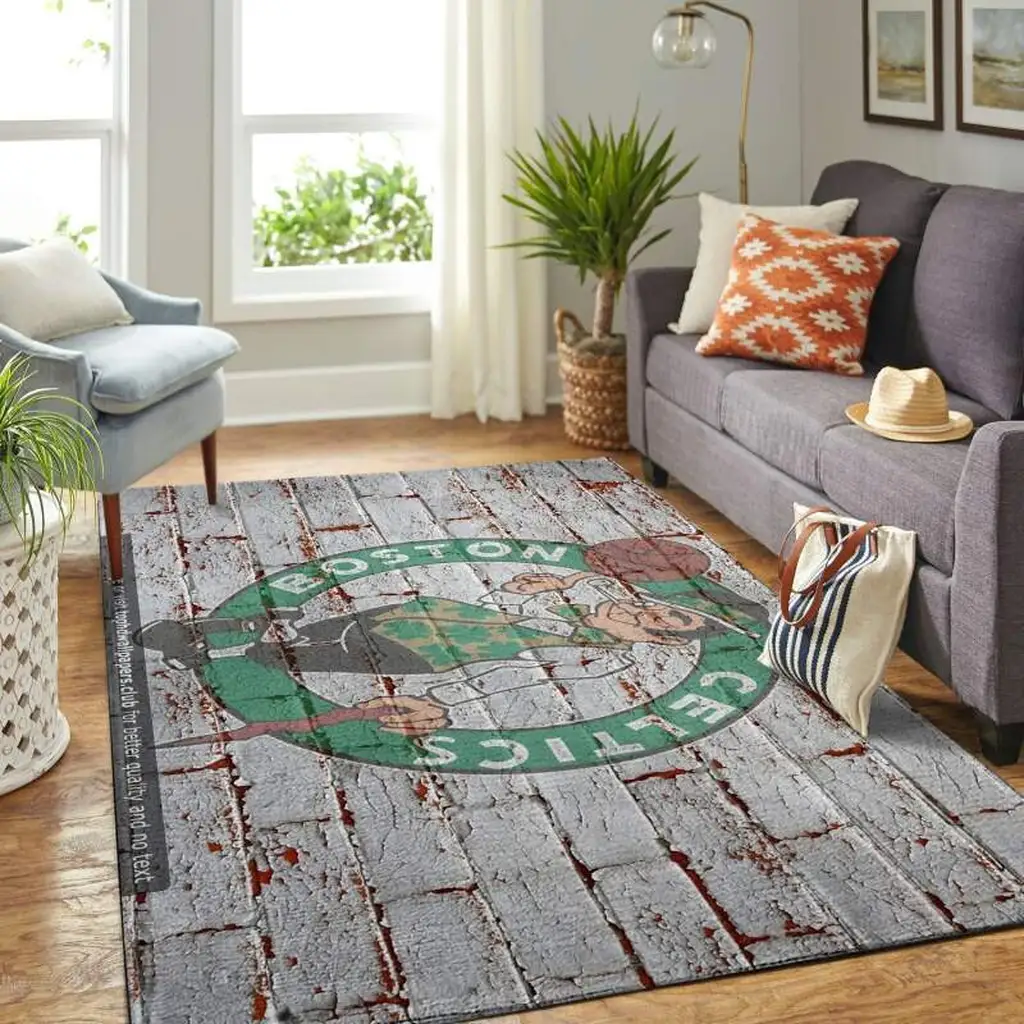 Boston Celtics Rug – Vintage Brick Style for Living Room Green and Gray
