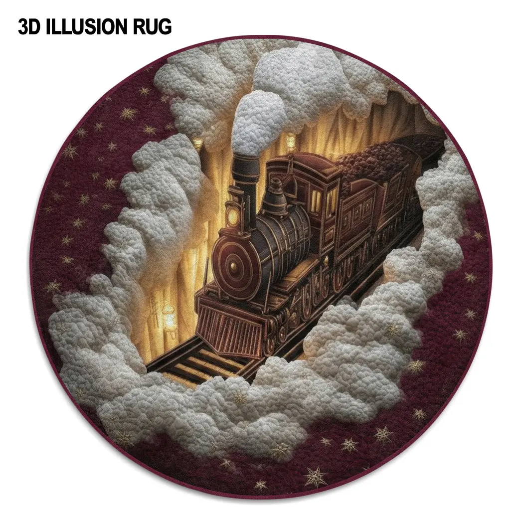 - 3D Illusion Design: The intricate 3D effect creates a sense of depth and motion, making the vintage train appear as if it is rolling right out of the rug, adding a unique visual centerpiece to your room.