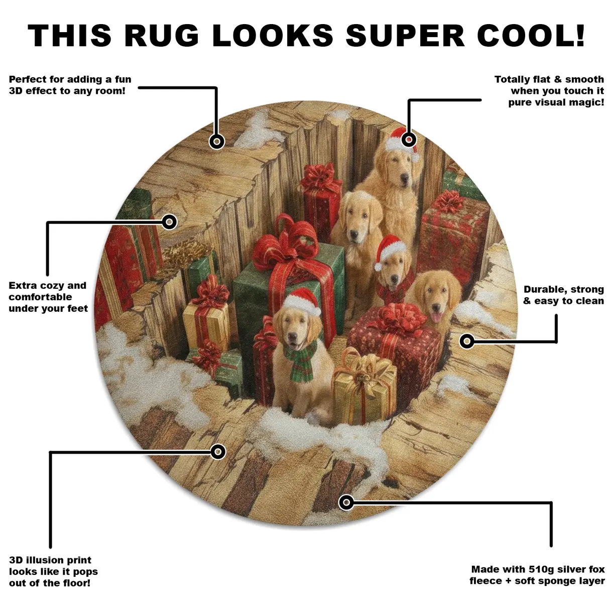 Be the first to review “Brown Red Holiday Illusion Rug 3D Decor With Puppies & Gifts” Cancel reply