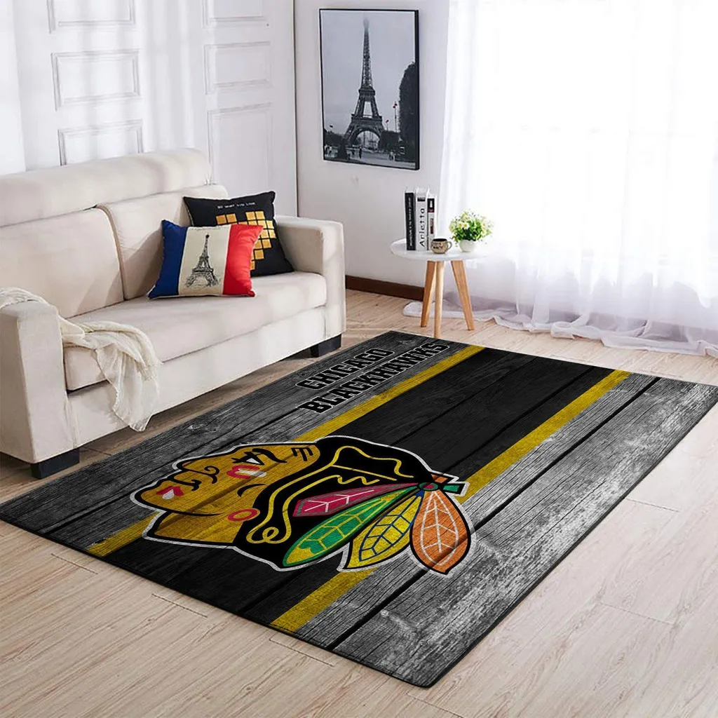 Chicago Blackhawks Rug – Vintage Style Area Design Black and Yellow