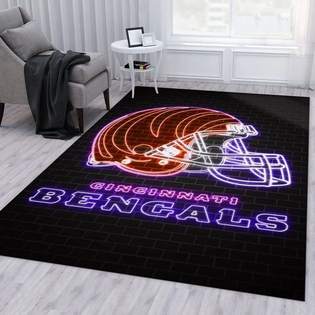 Cincinnati Bengals Rug – Neon Football Helmet for Fans Orange and Purple