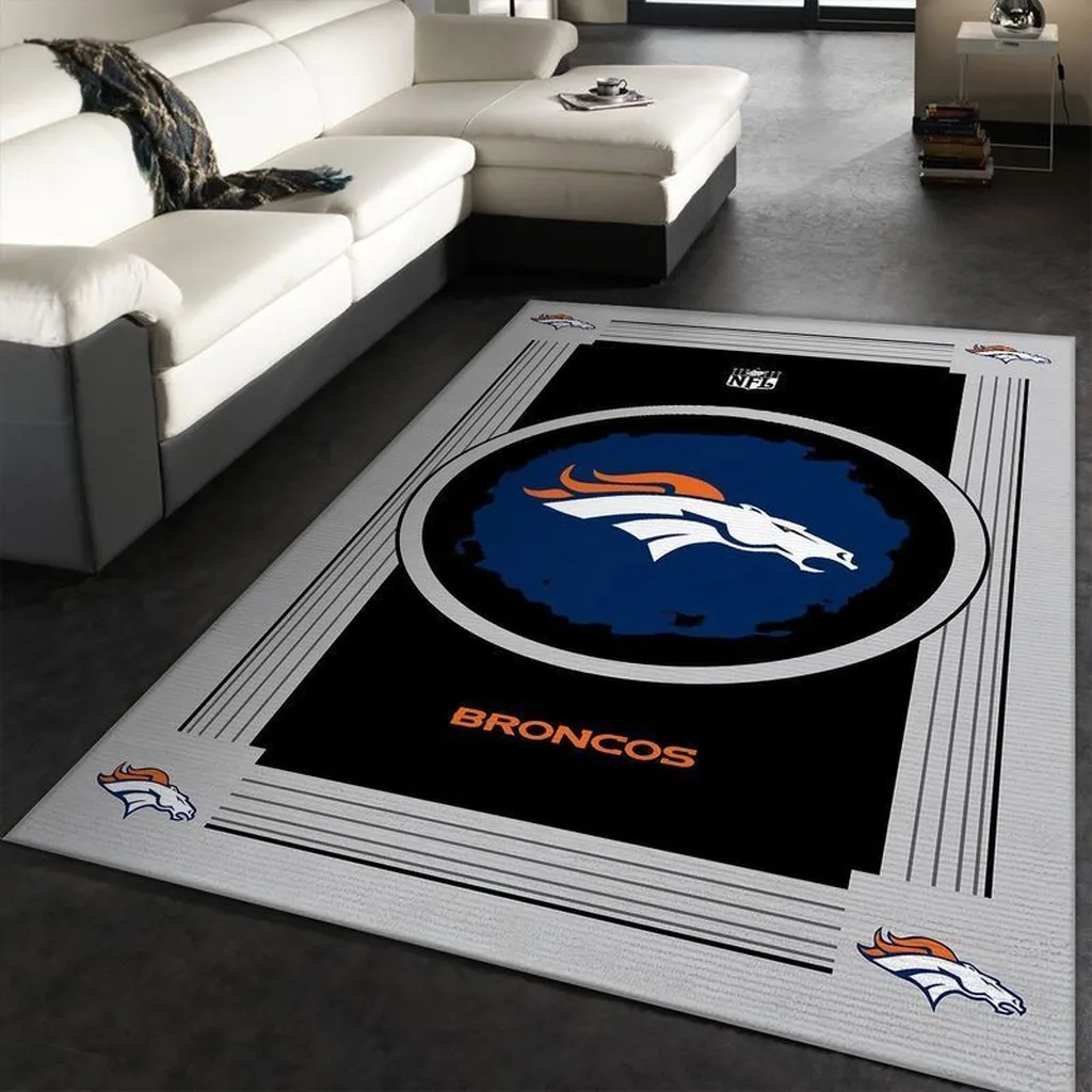 Denver Broncos Rug – NFL Logo Area for Living Room Decor Black and Gray