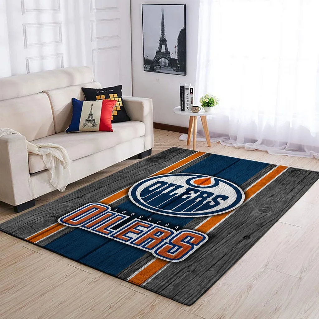 Edmonton Oilers Rug – Hockey Fan Area Floor Carpet Blue and Orange
