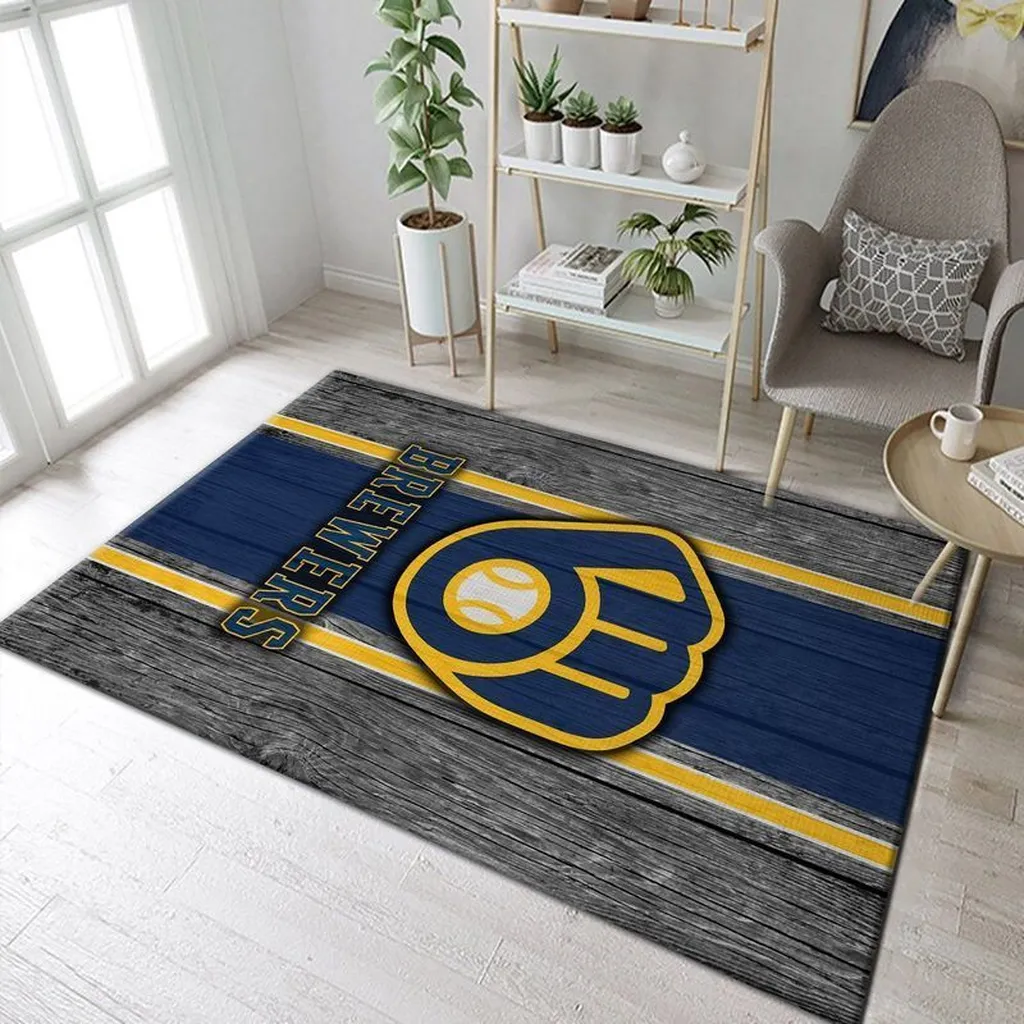 Brewers Baseball Rug Perfect for Home and Office Decor Blue and Gray