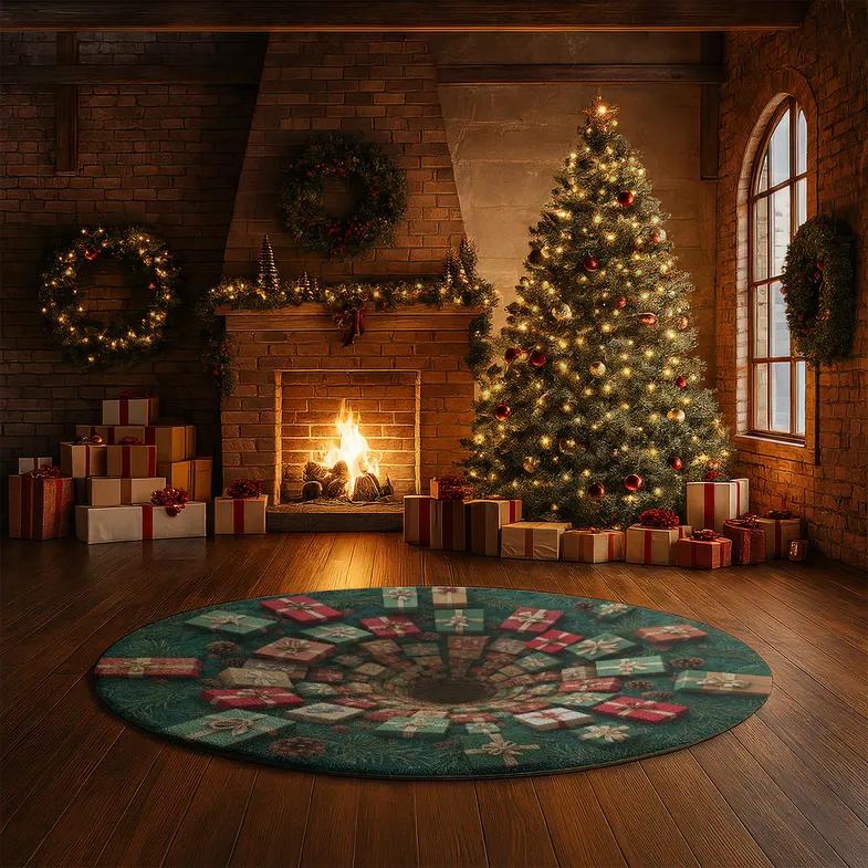 - Vibrant Color Coordination: The rug’s primary green backdrop symbolizes evergreen branches, while the red and gold gift boxes add warmth and richness. This harmonious palette instantly evokes joyful holiday feelings and brightens up your space.