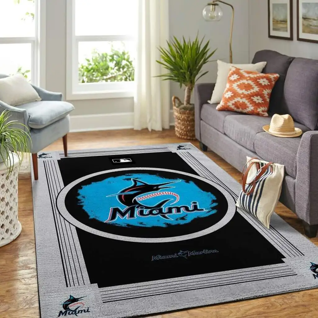 Miami Marlins Rug – Area Living Room Floor Decor Black and Blue
