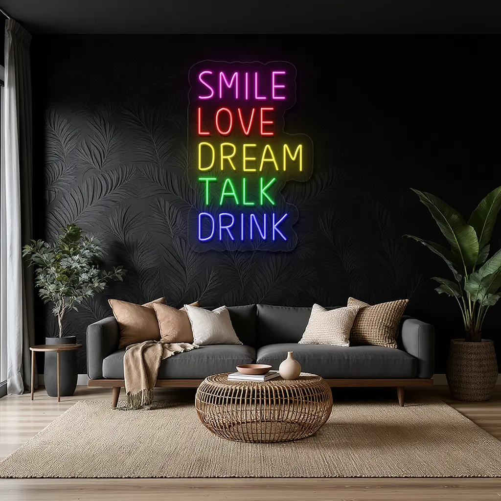 Neon Sign Bar Words Smile Love Dream Talk Drink Decor