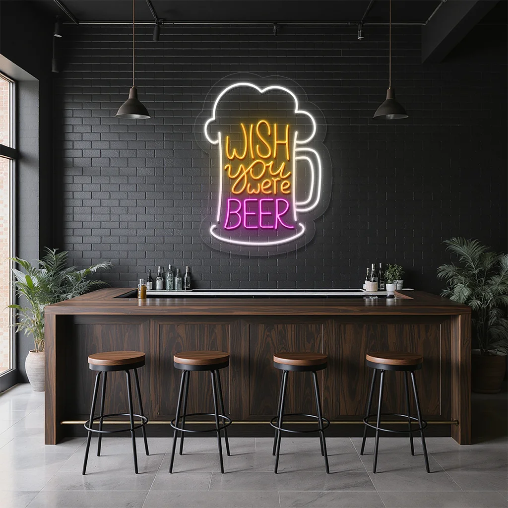 Neon Sign Beer Mug Wish You Were Beer Text Bar Decor