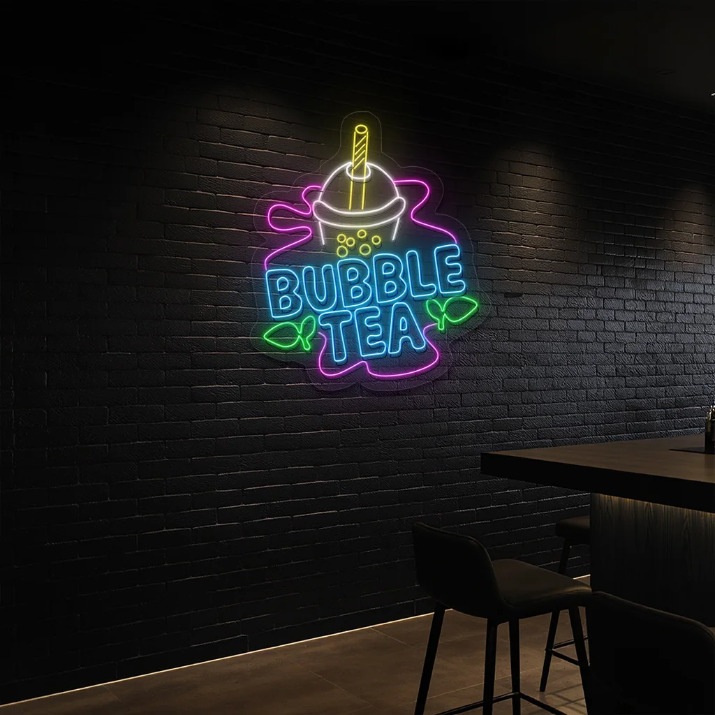 - Perfect for Fast Food Cafes: This neon sign’s playful imagery and bold colors make it an ideal decorative feature for cafes specializing in bubble tea and quick bites, instantly enhancing ambiance and customer engagement.