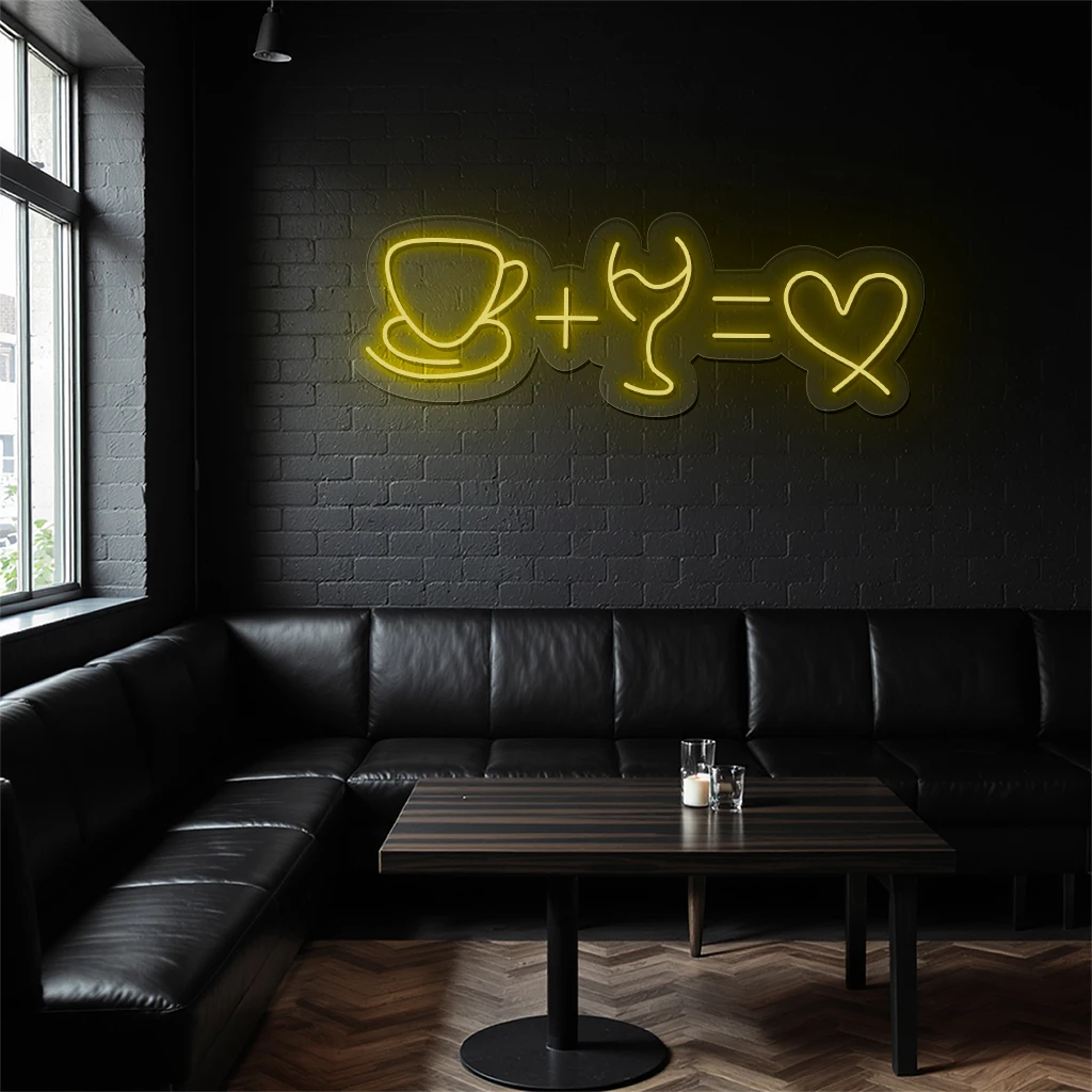 Neon Sign Coffee Cup and Glass Love Equation Caf Decor