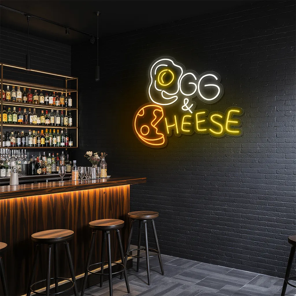 - Distinctive Iconography: The playful and recognizable egg and cheese shapes are designed with clean, flowing lines that make the sign instantly identifiable and relatable, enhancing the thematic ambiance of any food-related environment.