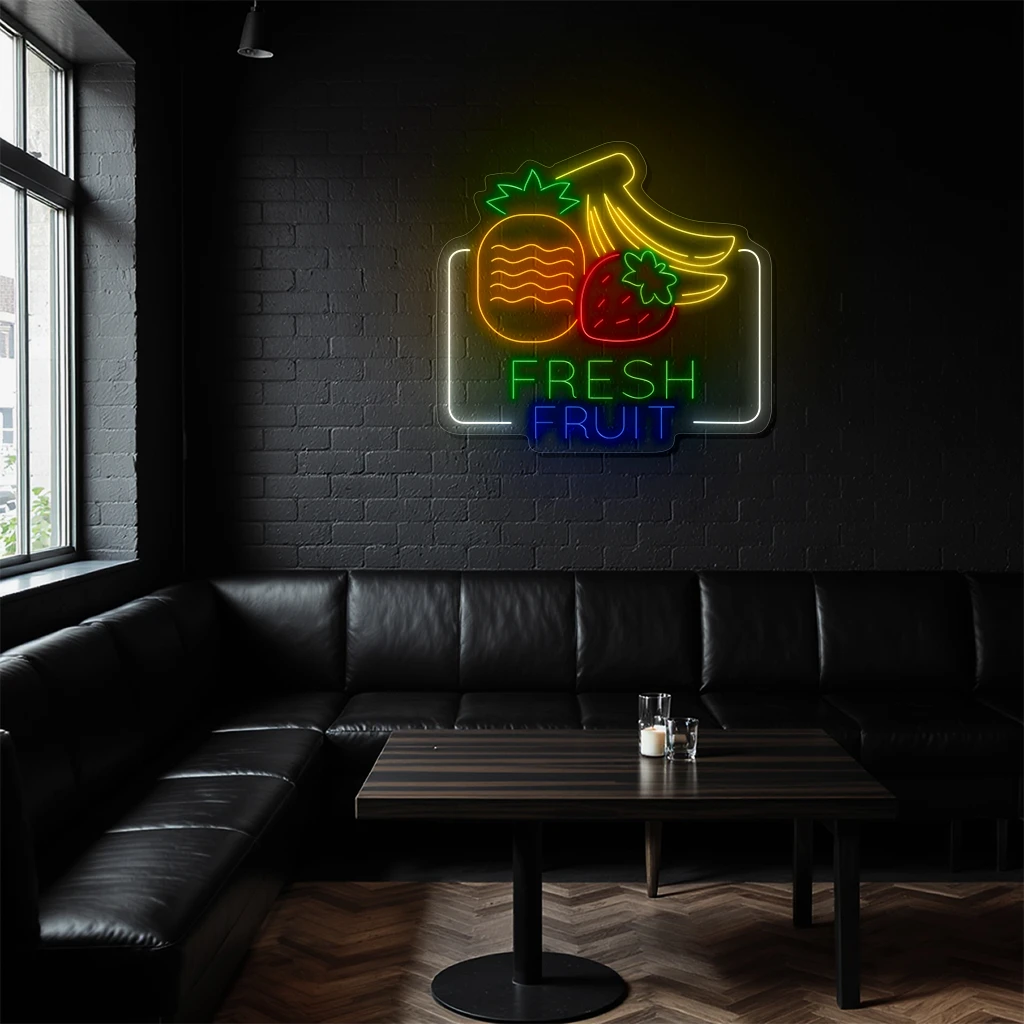 Neon Sign Fresh Fruit Pineapple Strawberry Banana Cafe Decor