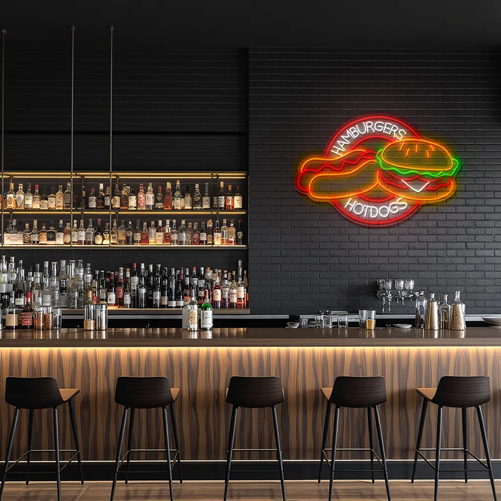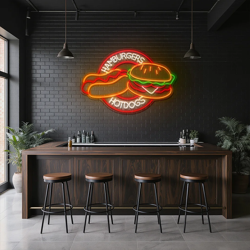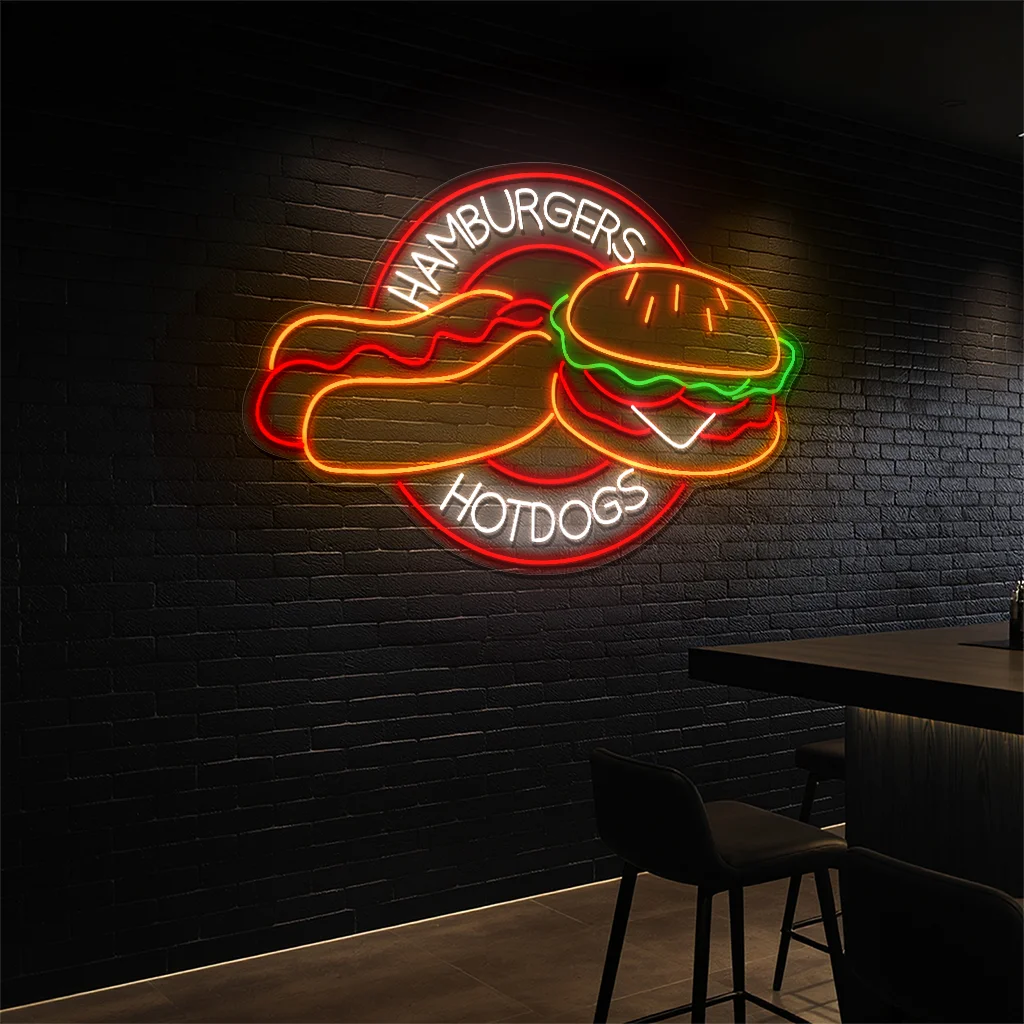 Neon Sign Hamburgers & Hotdogs Fast Food Restaurant Decor