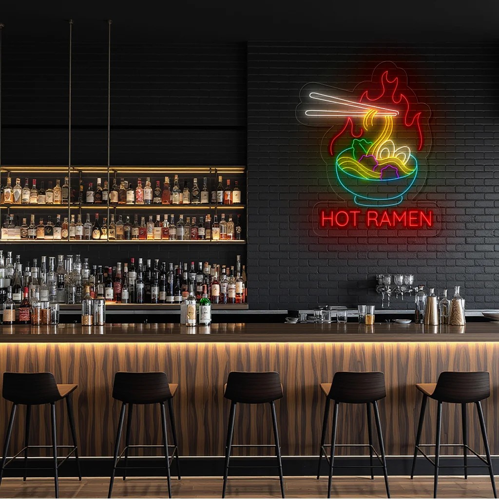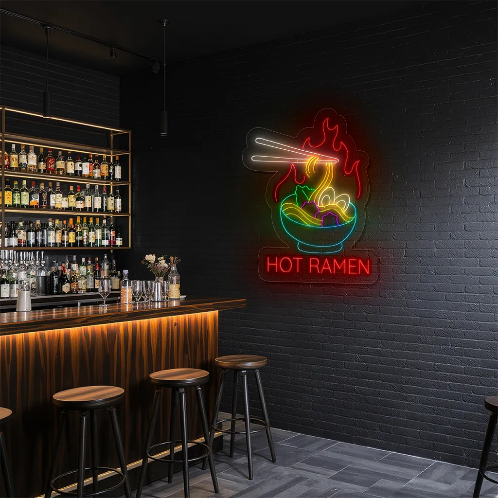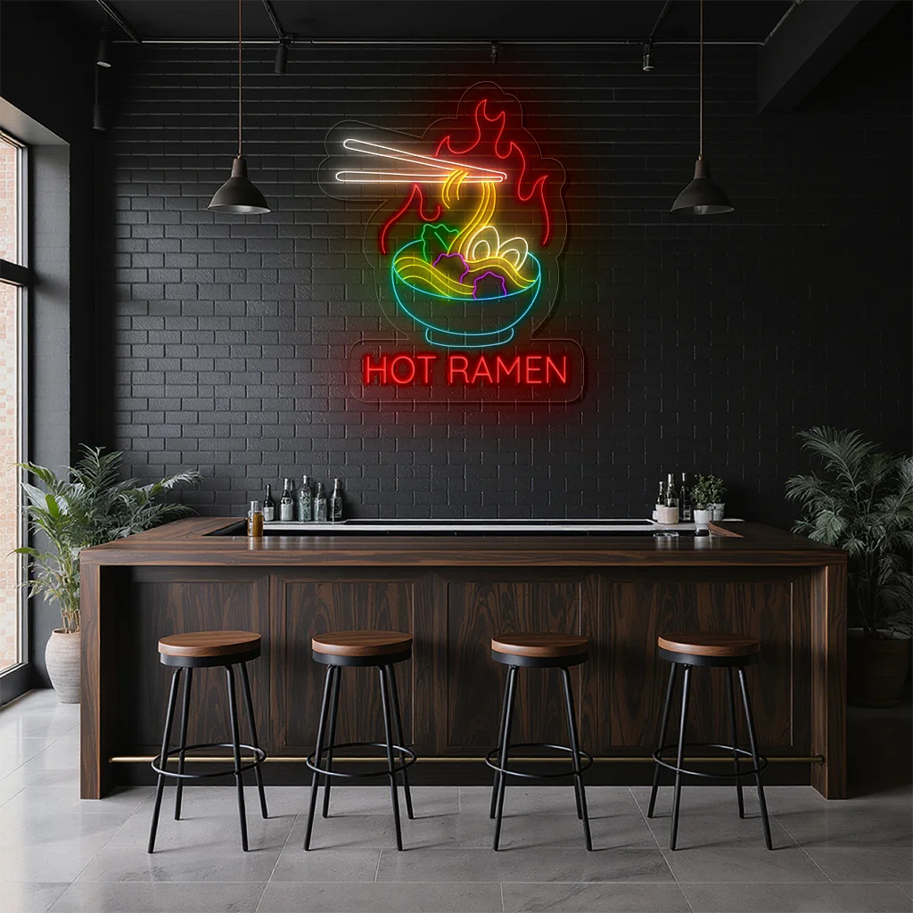 Neon Sign Hot Ramen Bowl with Chopsticks Japanese Food Decor