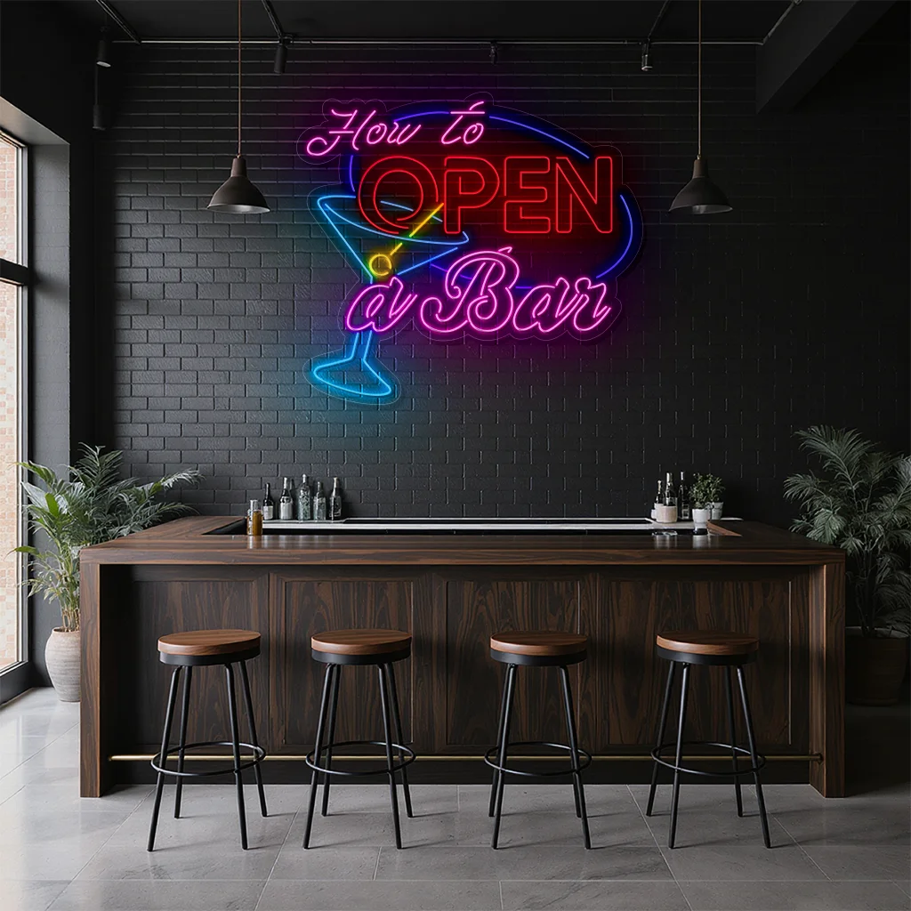 Neon Sign How to Open a Bar with Cocktail Glass Bar Decor