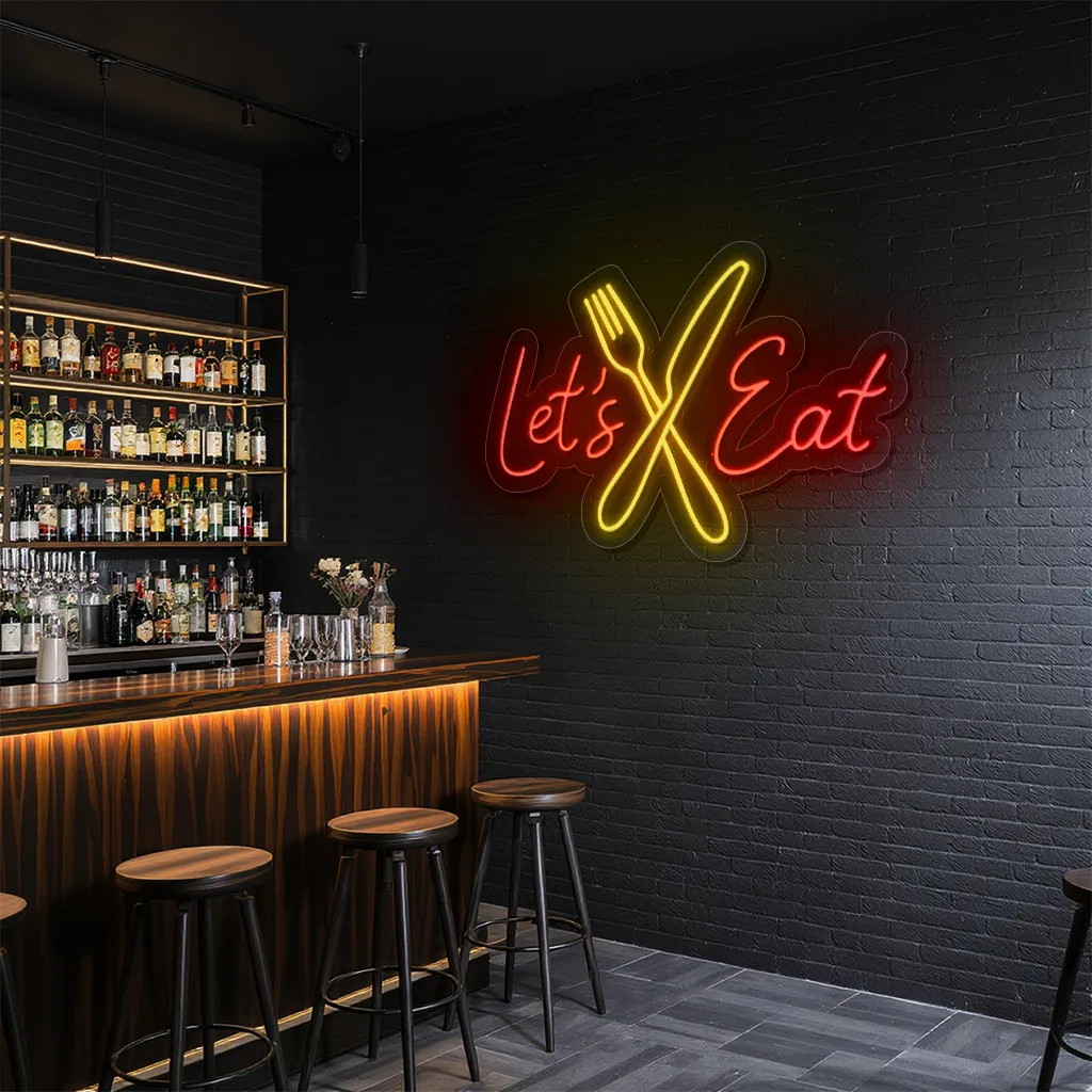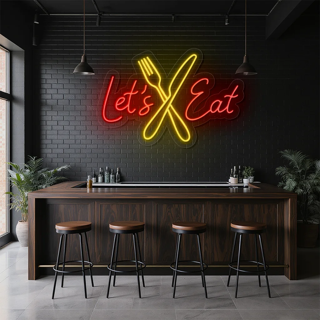 Neon Sign Let s Eat Fork and Knife Fast Food Decor