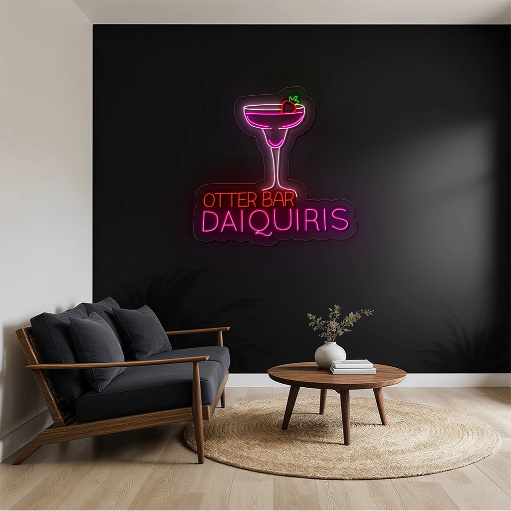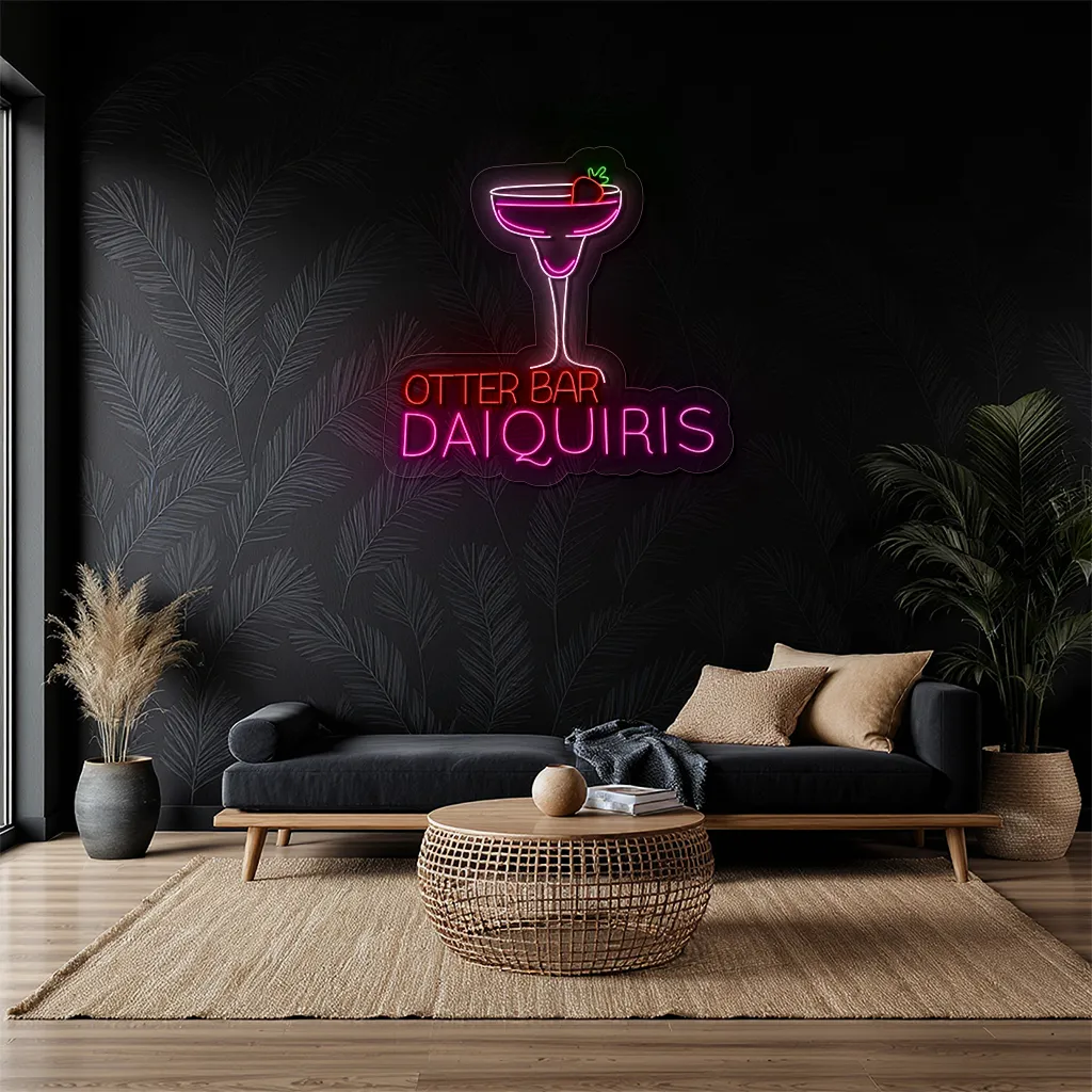 Neon Sign Otter Bar Daiquiris Cocktail Glass Bar Decor