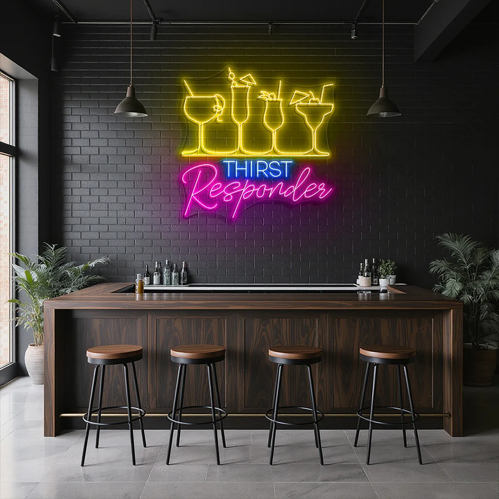 Neon Sign Thirst Responder Cocktail Glasses Bar Decor