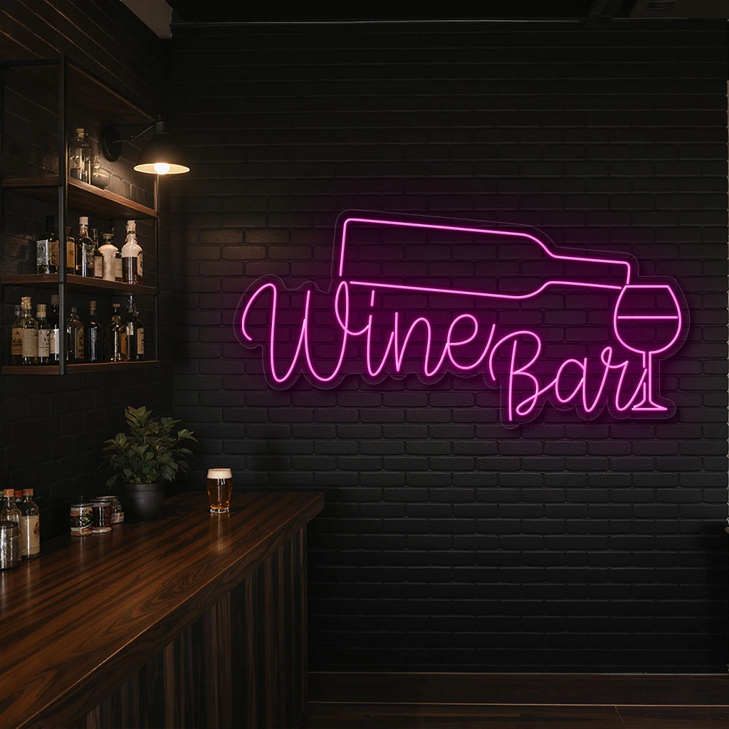 • Striking Neon Pink Glow: The bright pink neon tubing draws immediate attention, creating a warm and inviting atmosphere that enhances the ambiance of any wine bar or lounge area.