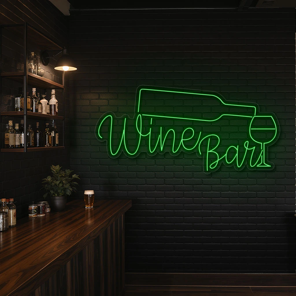 Neon Sign Wine Bar with Bottle and Glass Wall Decor
