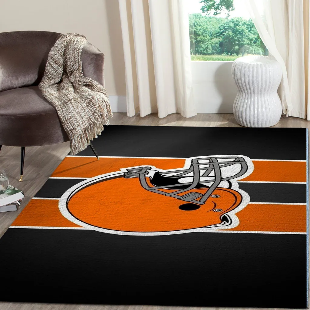 Showcase your pride the moment anyone walks through the door! The Orange and Black Football Helmet Rug Perfect for Sports Fans Decor blends team spirit with sophisticated home decor. Featuring rich, piece-dyed colors and a timeless design, this rug adds depth and character to any room. Transform your living space into the ultimate cozy fan zone today.