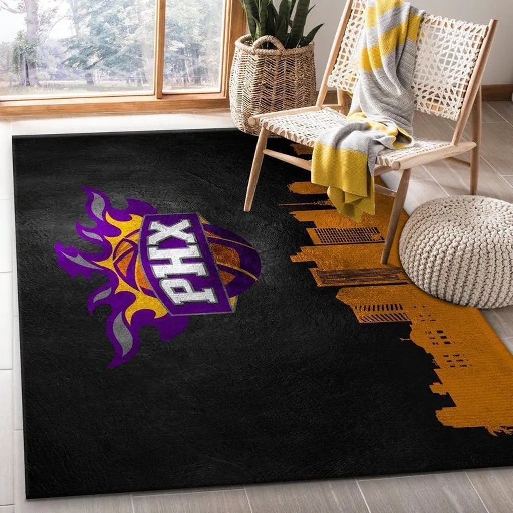 Phoenix Basketball Area Rug for Living Room Decor Black and Purple