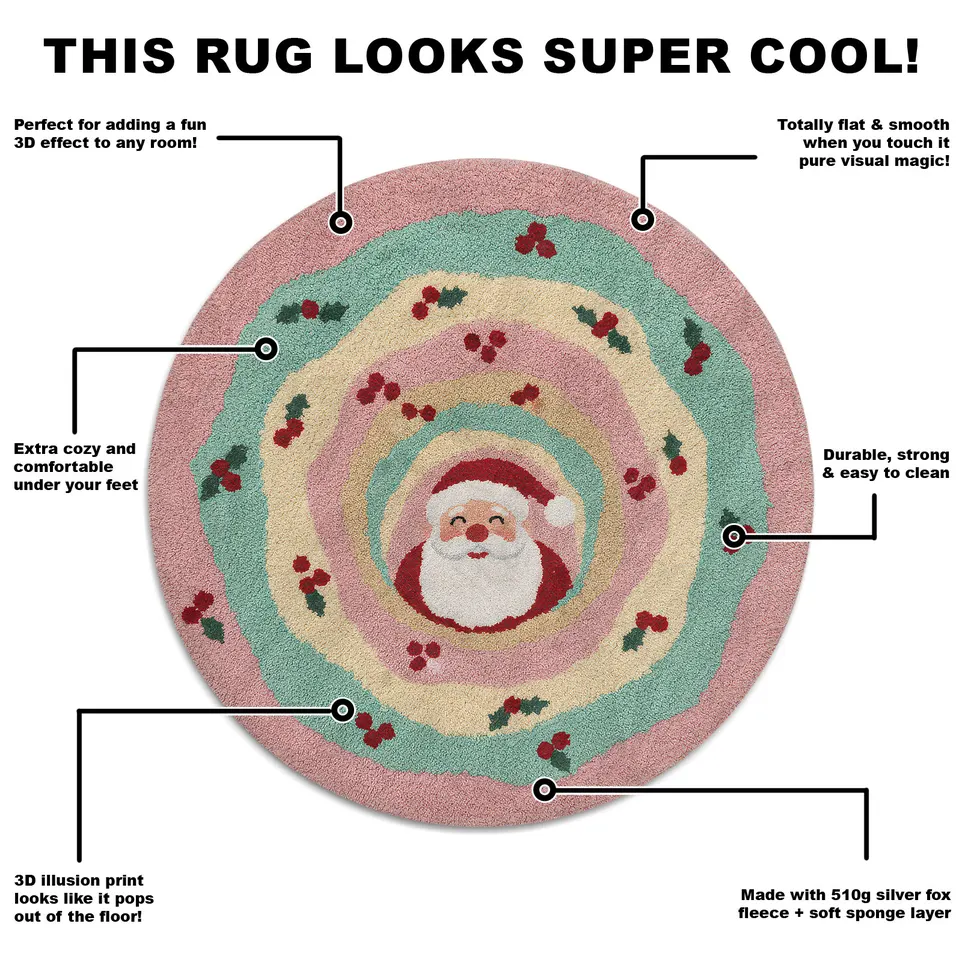 Pink Green Santa 3D Illusion Rug Perfect For Holiday Decor