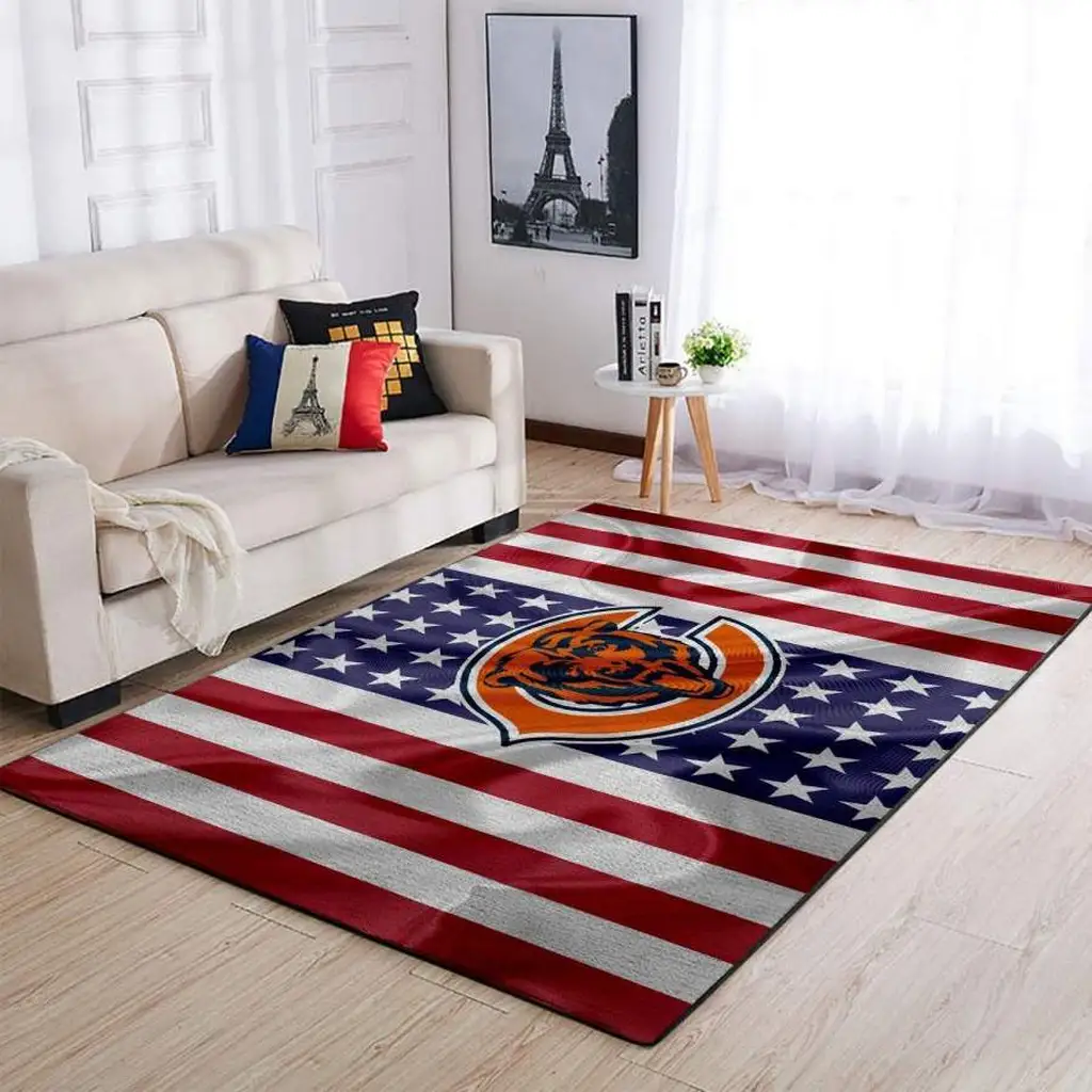 Chicago Bears Rug - with American Flag Design for Home Blue and Red