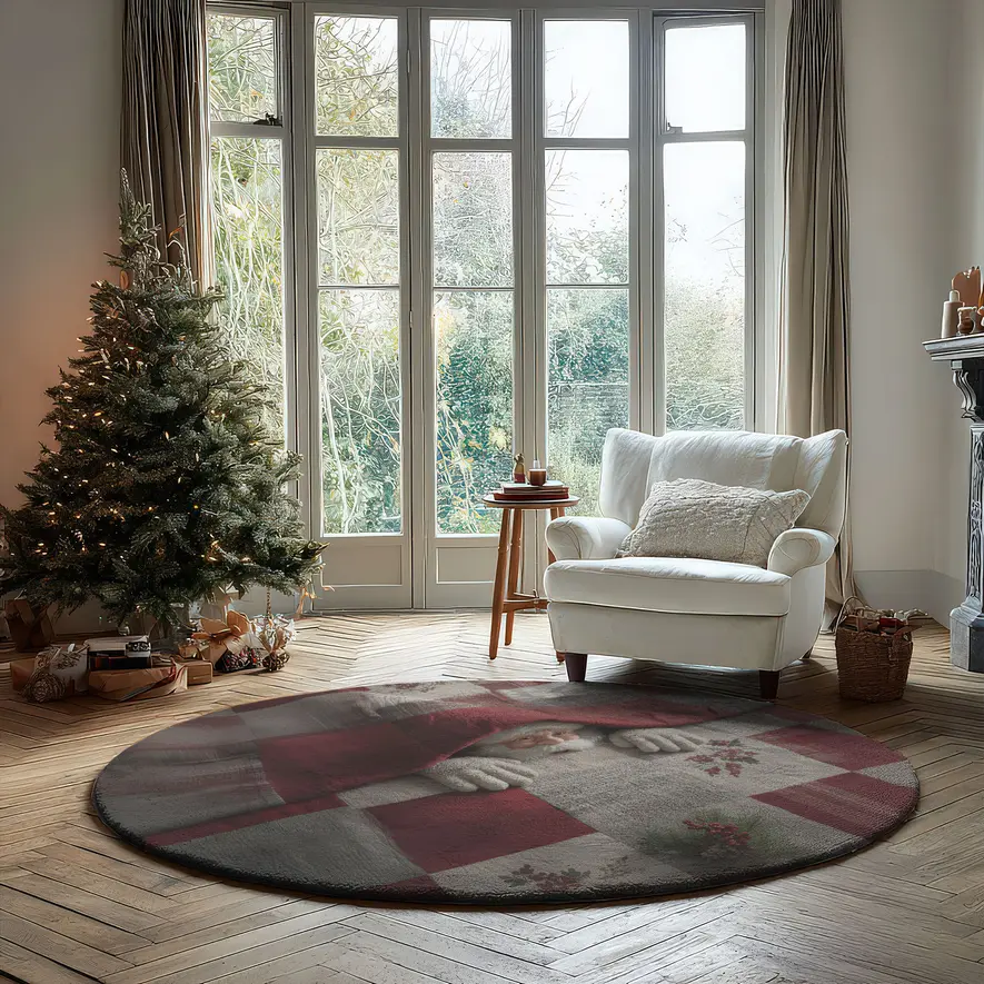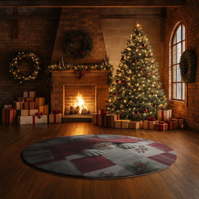 - 3D Illusion Design: The rug features a stunning 3D Santa that appears to be emerging from beneath the surface, adding depth and a playful surprise element to any room. This dynamic design enhances your holiday decor with a touch of whimsy.