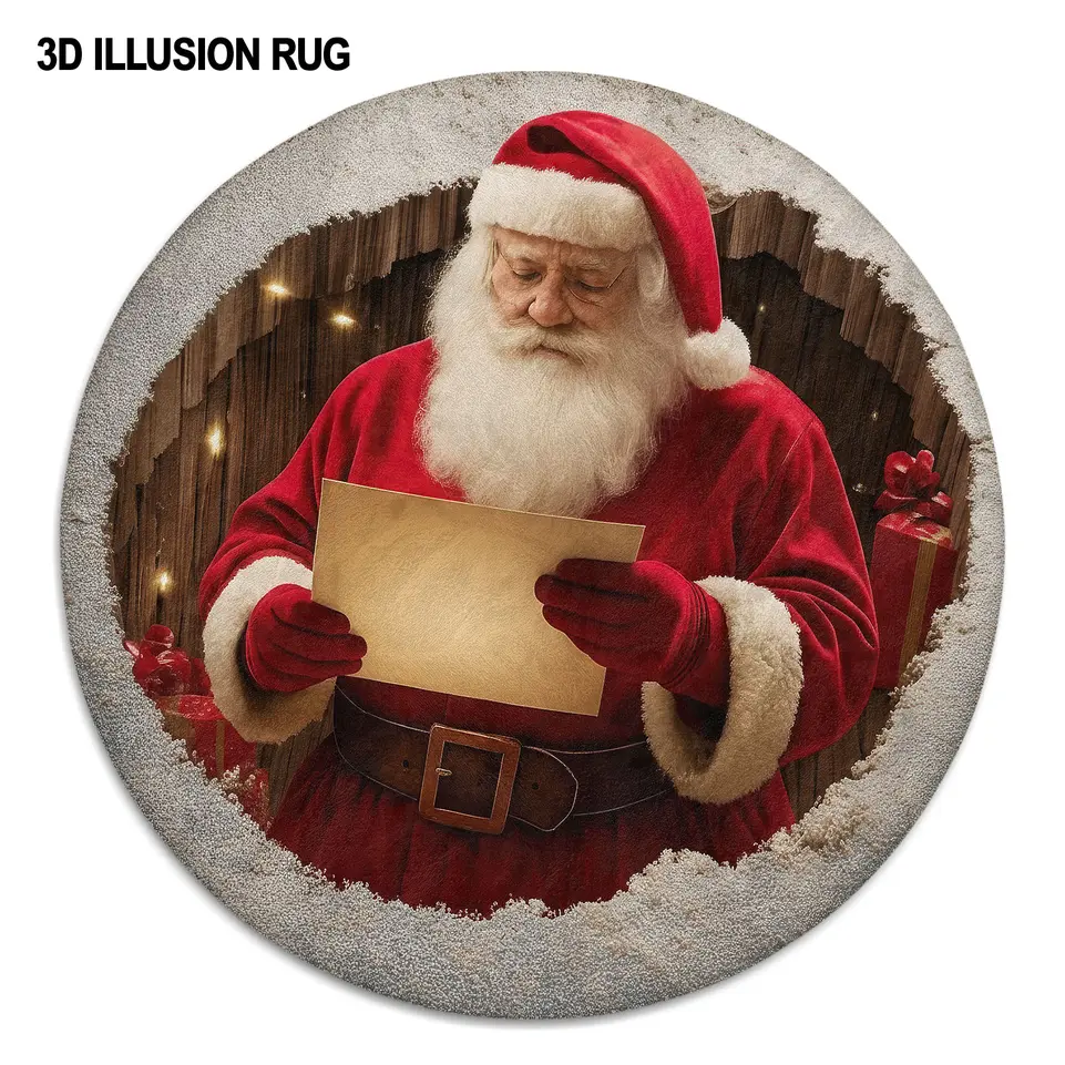 - Realistic 3D Design: The illusion-style rendering of Santa engrossed in his letter creates a magical depth, making the rug an eye-catching centerpiece for your holiday decor.
