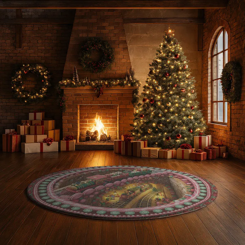 - 3D Illusion Design: The intricate 3D train and tunnel imagery add depth and visual intrigue, turning a simple rug into a stunning holiday conversation piece.