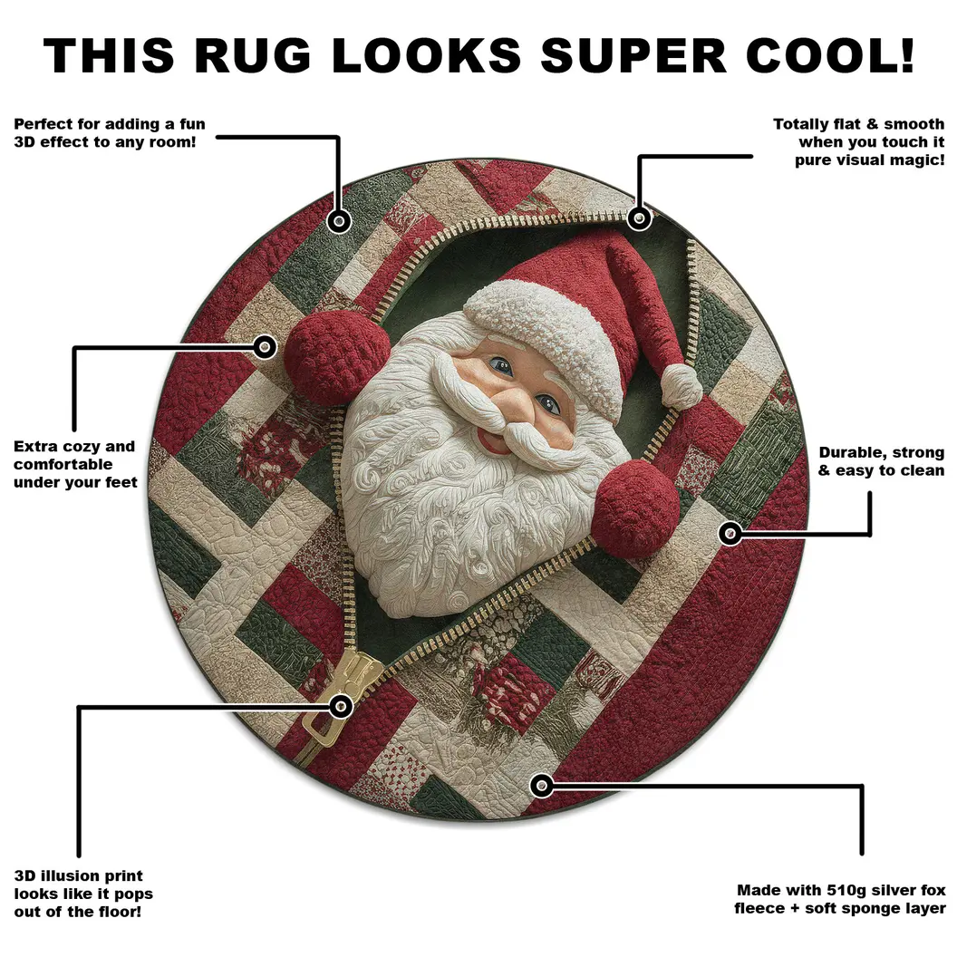 The Red White 3D Santa Illusion Rug – Festive Holiday Decor brings a whimsical charm to your holiday setting with its striking 3D Santa design. This round rug blends classic Christmas colors and intricate patchwork patterns, making it a perfect seasonal accent to brighten any room.