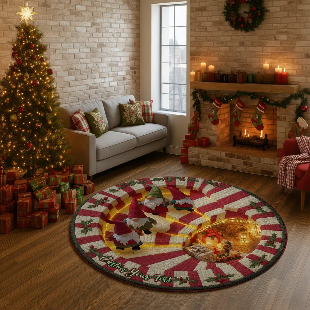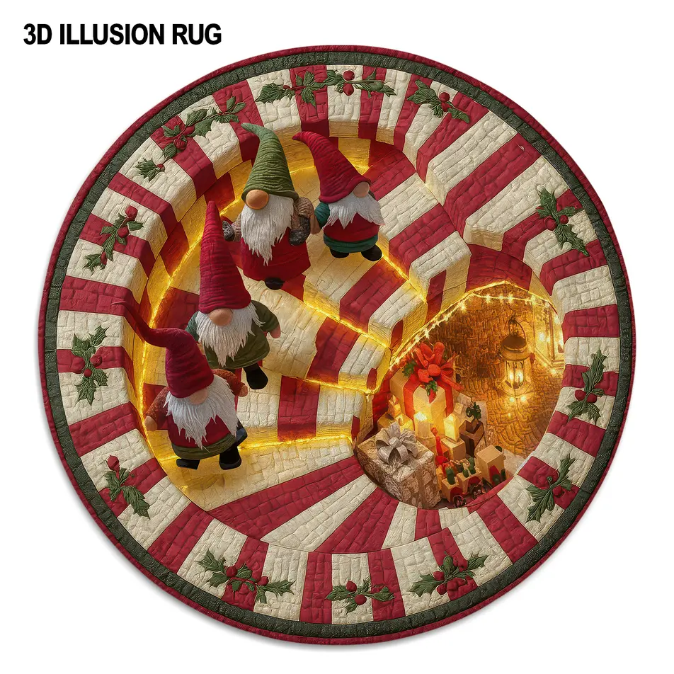 - 3D Illusion Design: The intricate 3D effect brings depth and magic to your space, making the gnomes appear as if they are truly part of the rug’s landscape, enhancing your holiday atmosphere with a playful and eye-catching centerpiece.