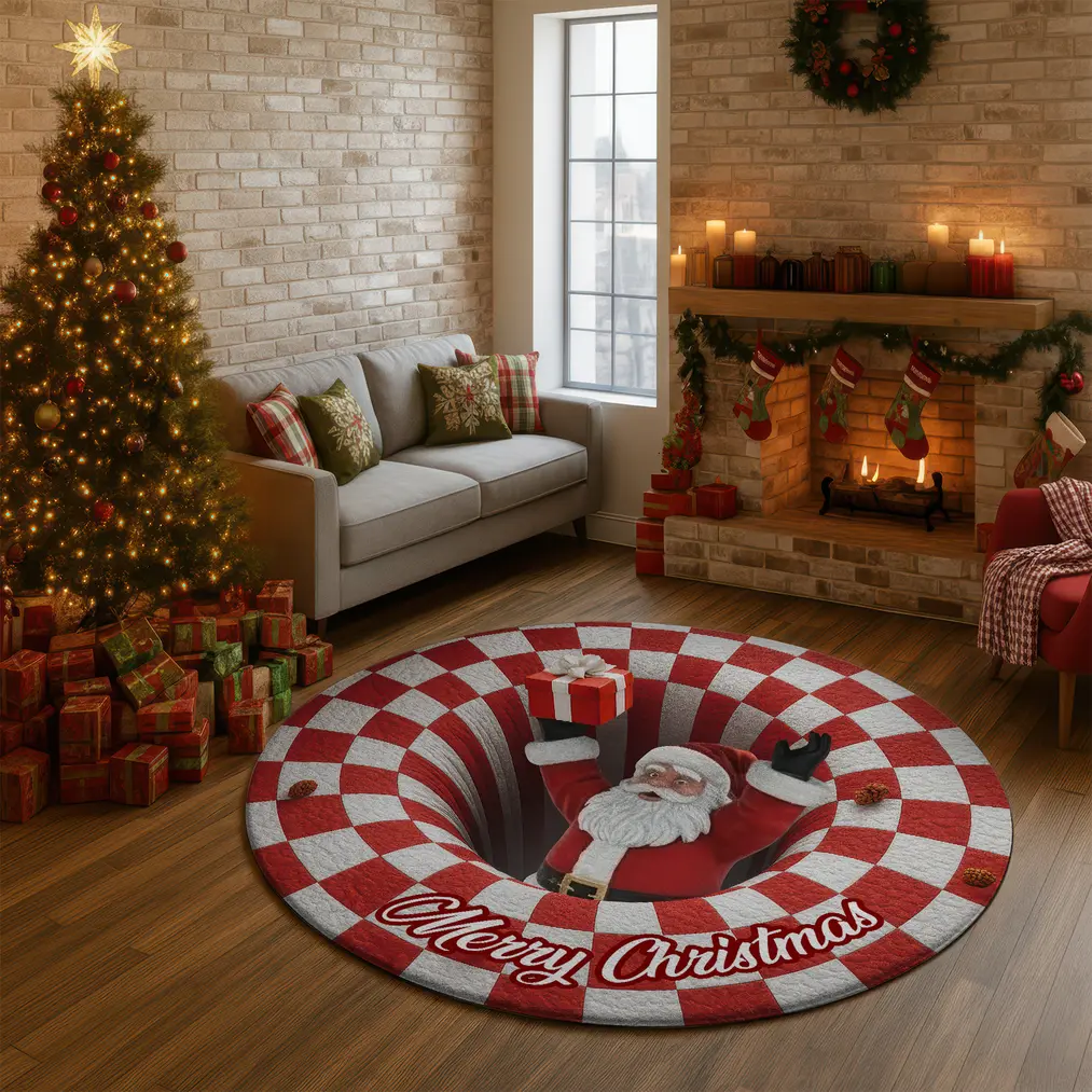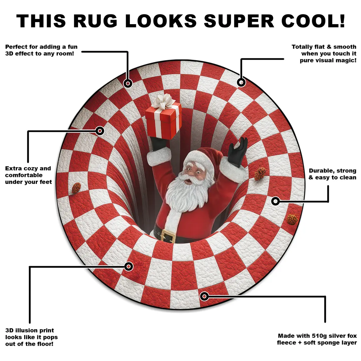 Red White Santa 3D Illusion Rug – Perfect Holiday Decor Accent