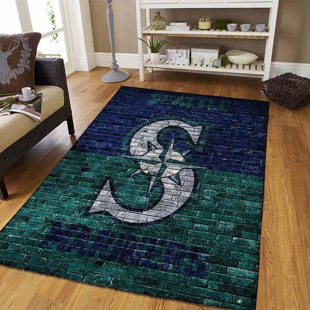 Seattle Mariners Rug – Baseball Area Team Design Blue and Yellow